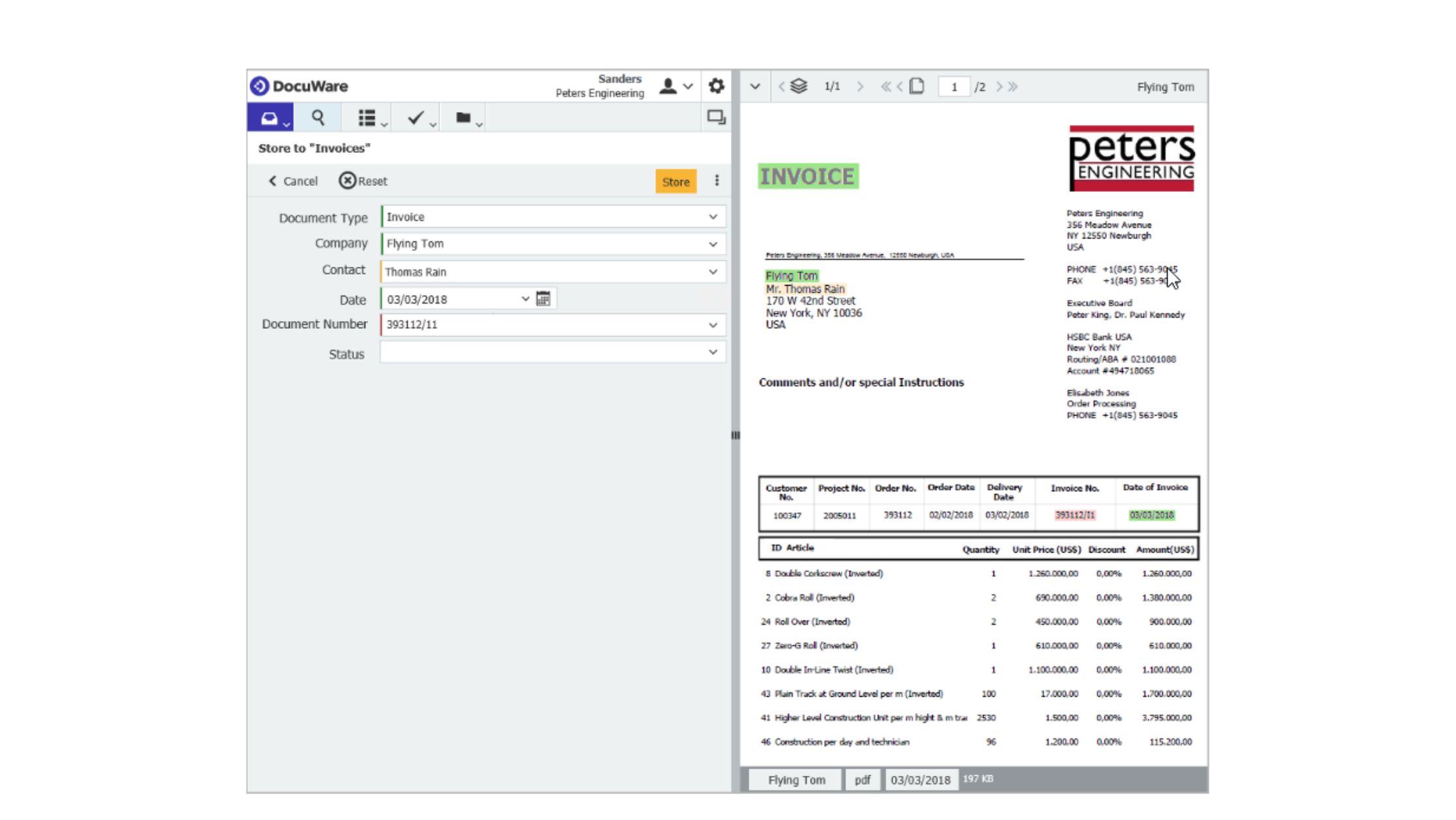 DocuWare inteligentno indeksiranje prepozna najbolj pomembne podatke iz dokumentov in jih samodejno napolni v polja z metapodatki.
