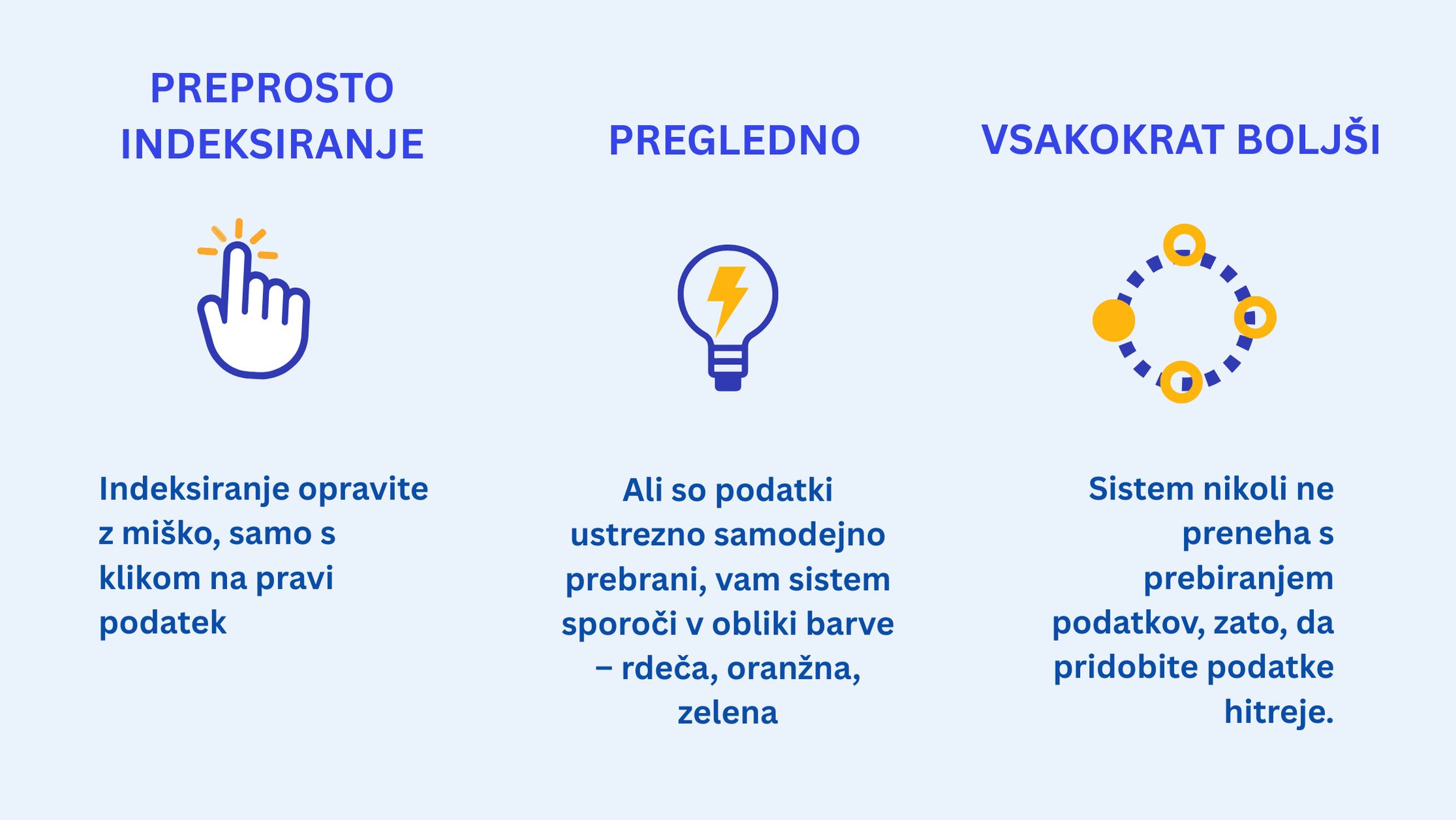 Inteligentno indeksiranje si zapomni vsak dokument, vsak podatek, z vsakokratnim indeksiranjem postane vaše delo lažje in hitrejše.